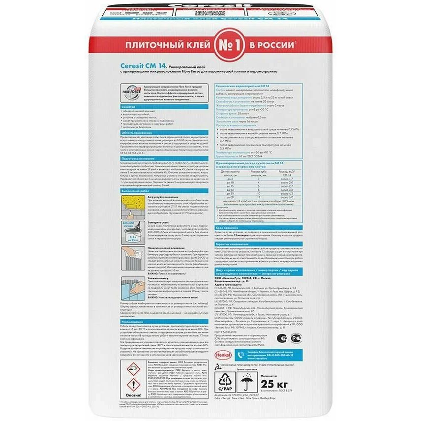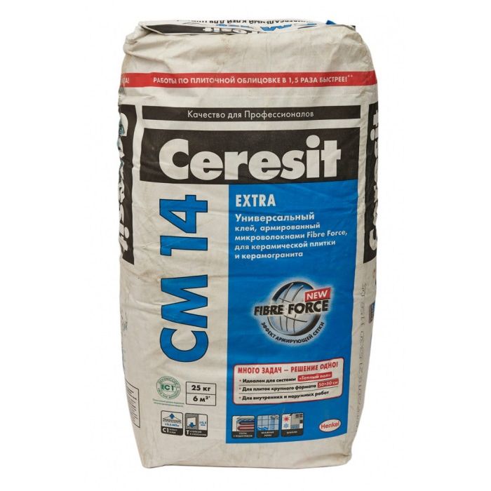 Клей для керамической плитки и керамогранита Ceresit (Церезит) CM 14 Extra 25 кг